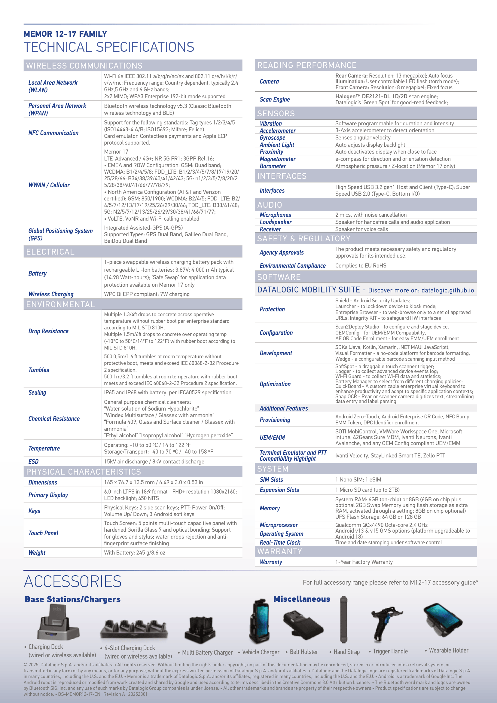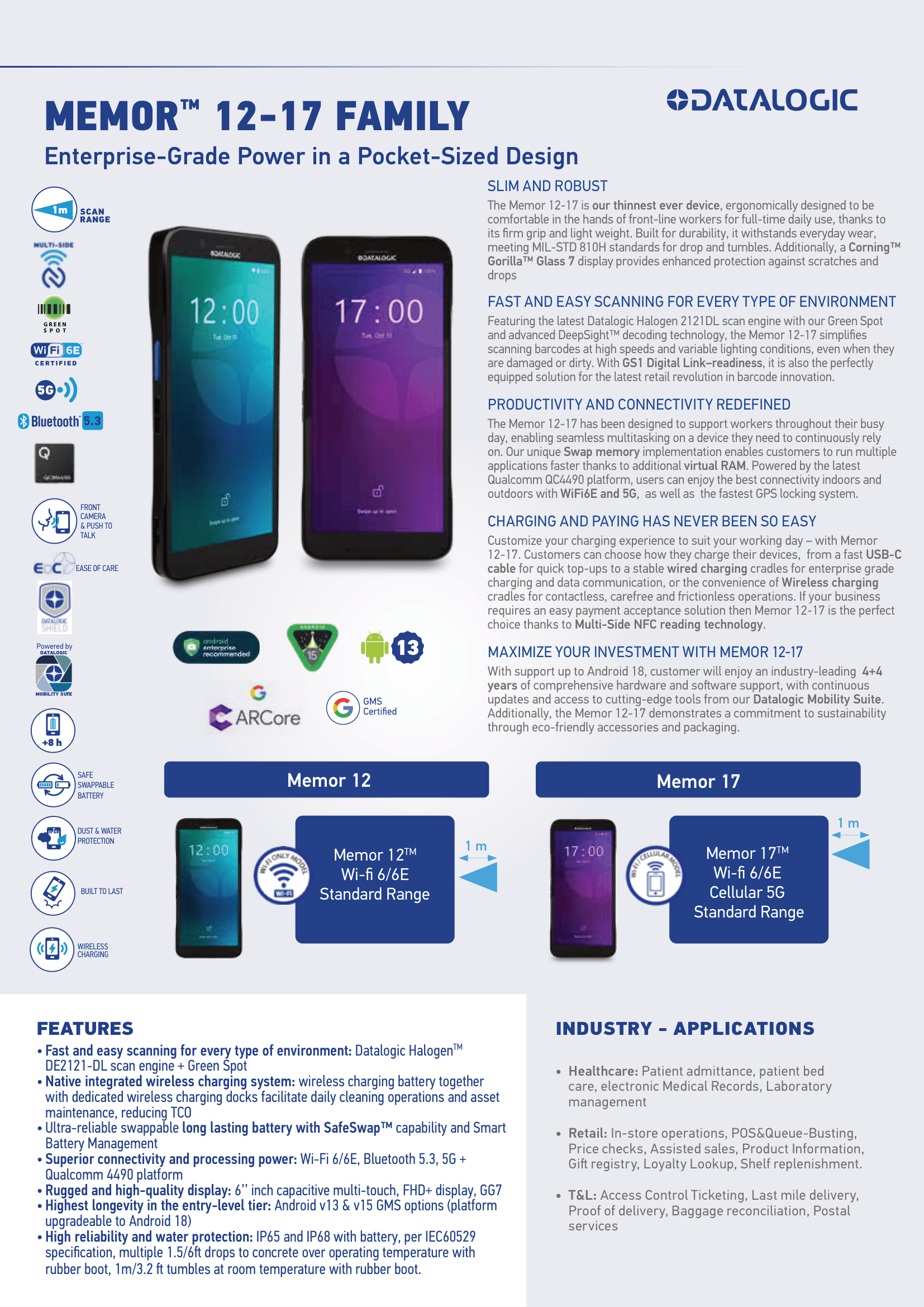DATALOGIC PDT MEMOR 12 2D-SR 6/64 WIFI BK AD13/GMS